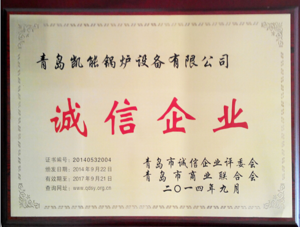 青島凱能鍋爐榮獲2014年度“青島市誠(chéng)信企業(yè)”榮譽(yù)稱(chēng)號(hào)